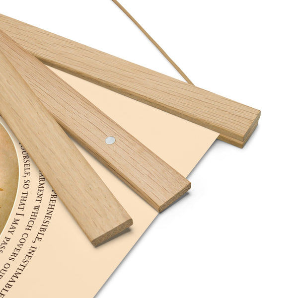 • Hangers made from natural wood • Hanger piece thickness: 0.2″ (0.5 mm) • Hanger piece width: 0.79″ (2 cm) • Paper weight: 192 g/m² • Poster secured by magnets